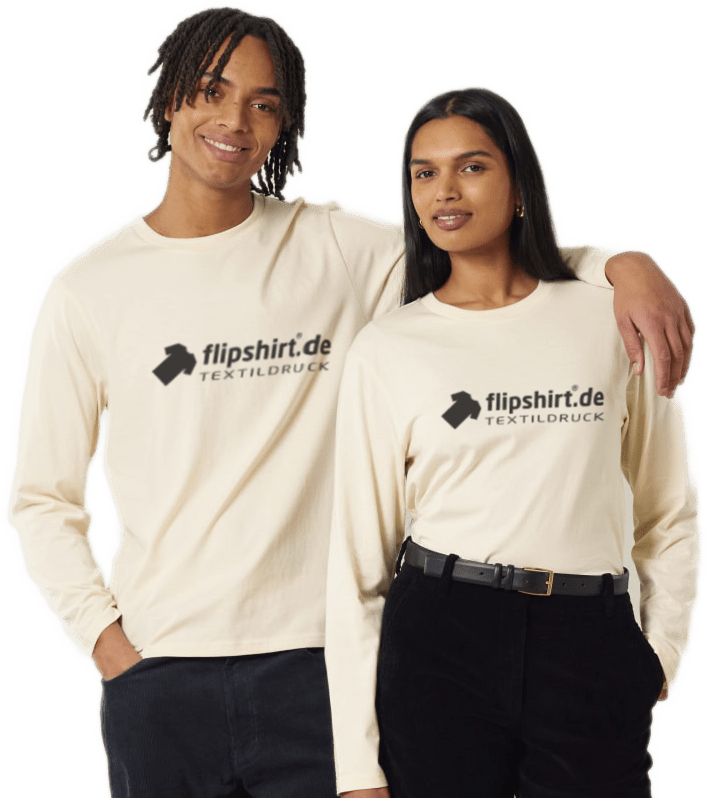 Wir drucken unsere Longsleeves überwiegend im hochwertigen Direktdruck (DTG) mit Brother GTX Maschinen. Für bestimmte Projekte nutzen wir zusätzlich Flexdruck, Flockdruck oder Siebdruck-Transfers – je nachdem, was am besten zum Material passt.