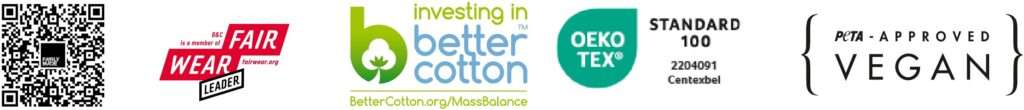 Die verwendete Baumwolle unterstützt Programme wie die Better Cotton Initiative. Zudem ist das Material nach Oeko-Tex Standard 100 geprüft.